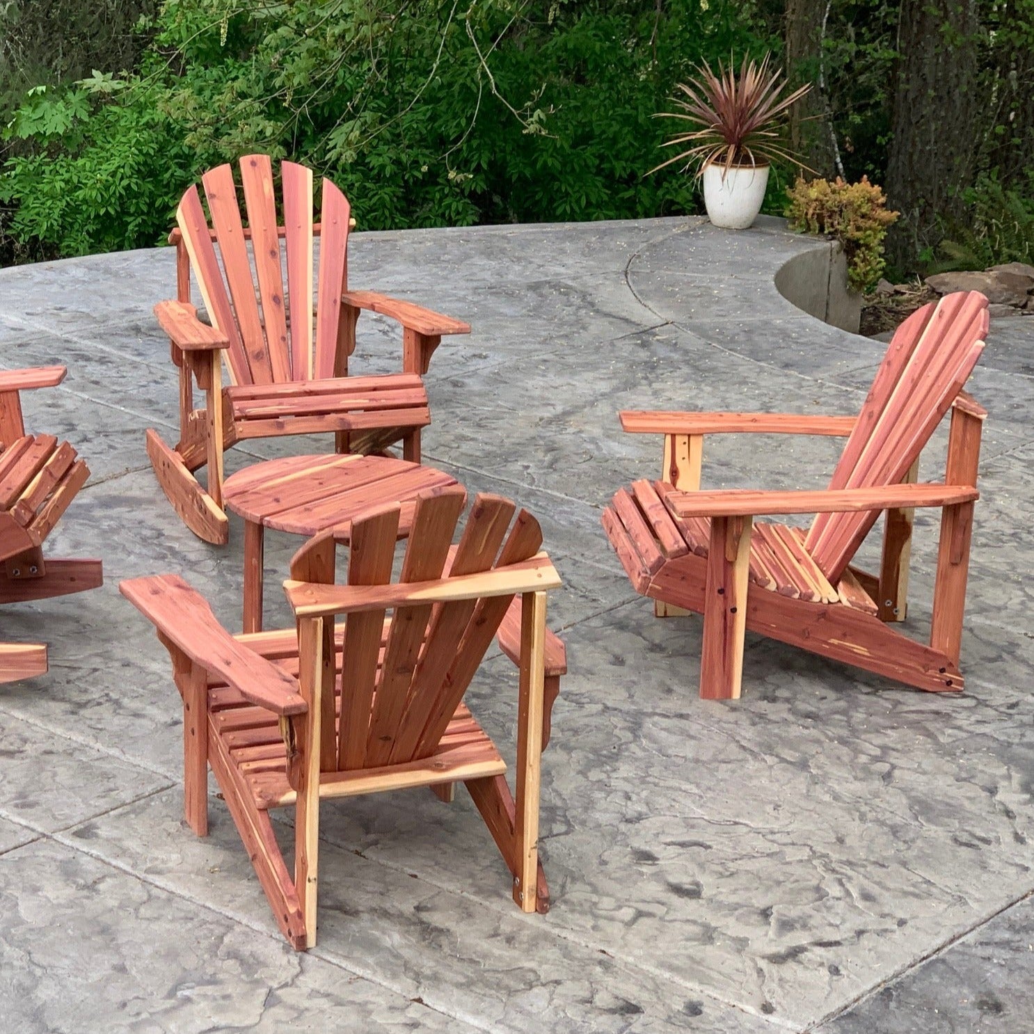 The Oregon Handcraft Tennessee Red Adirondack Patio Chair comes with a warning that extreme comfort and lounging may occur. These differ from our classic design only in wood choice. Tennessee Red is the strongest and most durable type of Cedar bordering on the hardwood side of the spectrum. Reddish with swirling purples and whites in color is all natural. These are as beautiful and comfy as they look. Enjoy the scenery on your patio or in the grass. If you happen to be in Eugene (home of where these beauties are built) stop by J. SCOTT CELLARS across the famed 5TH ST PUBLIC MARKET HALL where a few of these beauties reside. All materials sourced locally and built right here in Eugene, OR. Solid wood construction only.