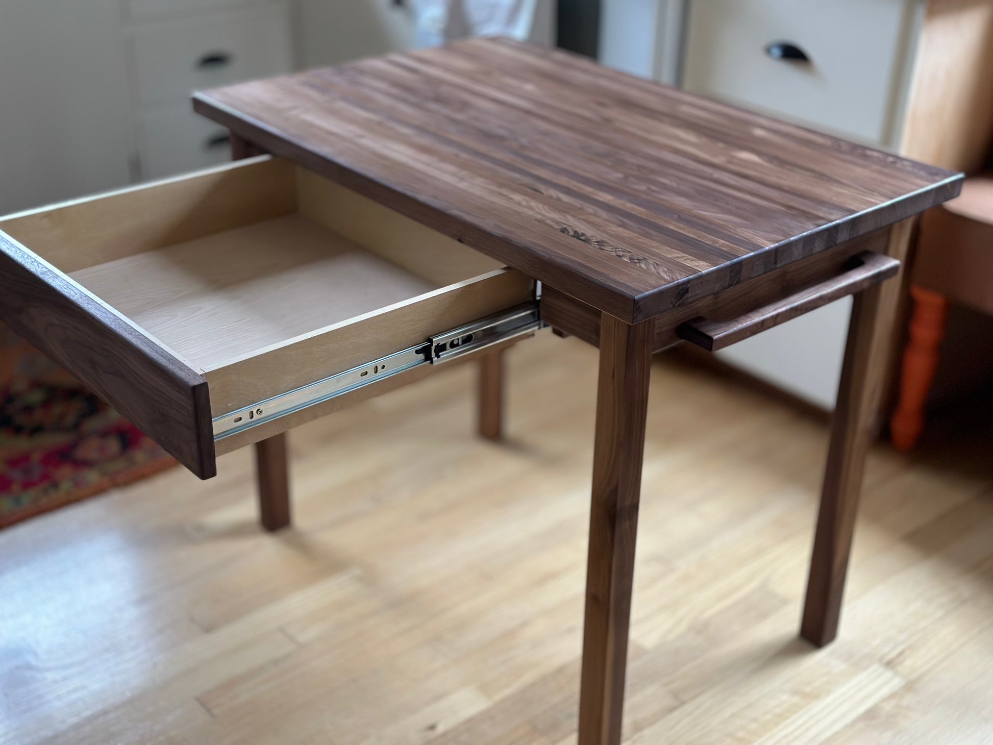 Elevate your culinary journey with Oregon Handcraft’s Butcher Block Table in Black Walnut. The perfect kitchen companion, easy to navigate around and on. We build our Walnut butcher block tables out of thick, rough cut hardwood lumber. That means every table is unique with differing, naturally occurring hardwood grain patterns. No two alike in that regard.
